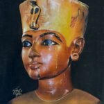 Bust of a young Pharoan (Tutankhamun) in a detailed realistic style.